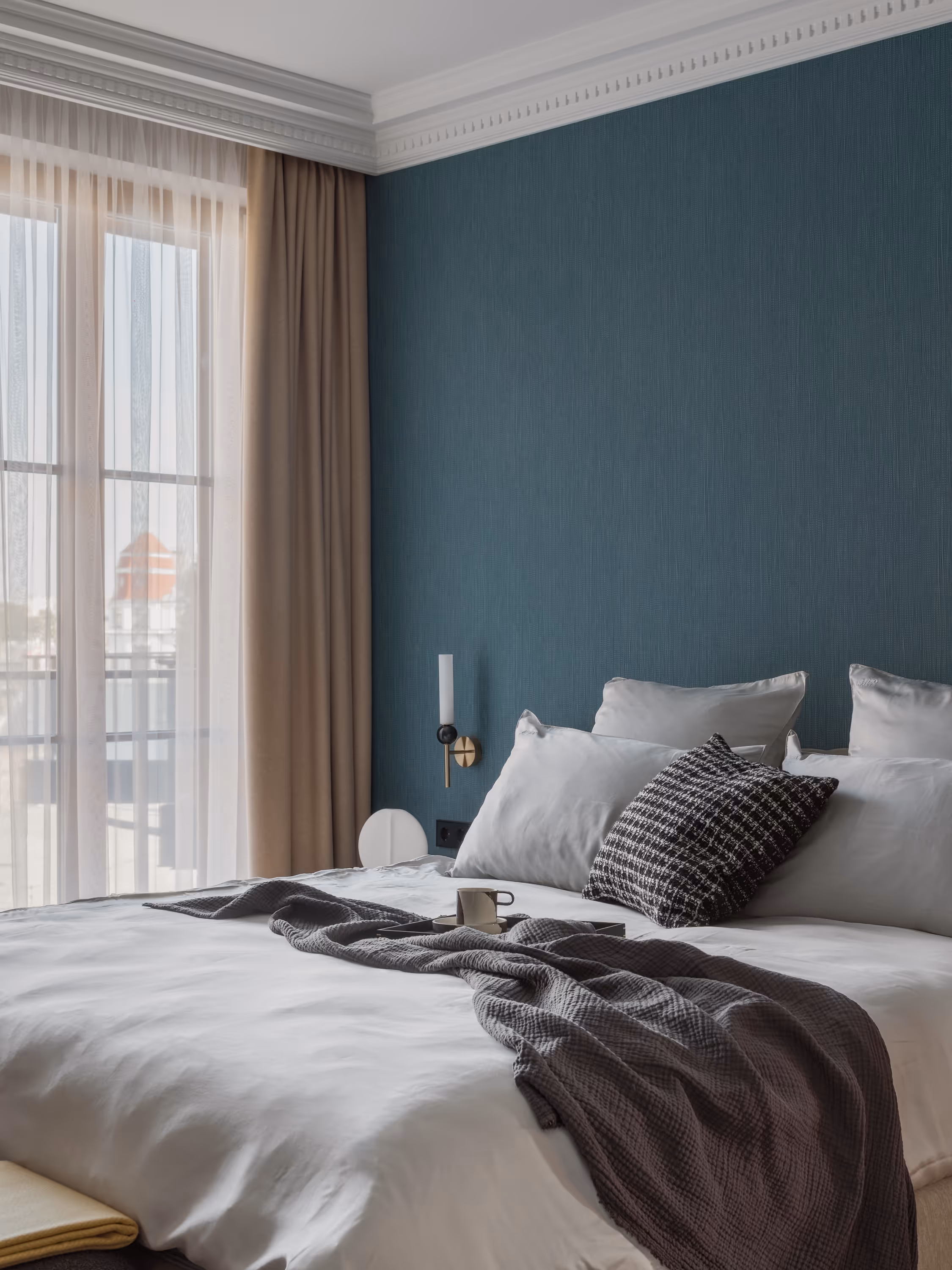 Interjers balstās uz dialogu starp klasiskajām proporcijām un mūsdienīgo komfortu.