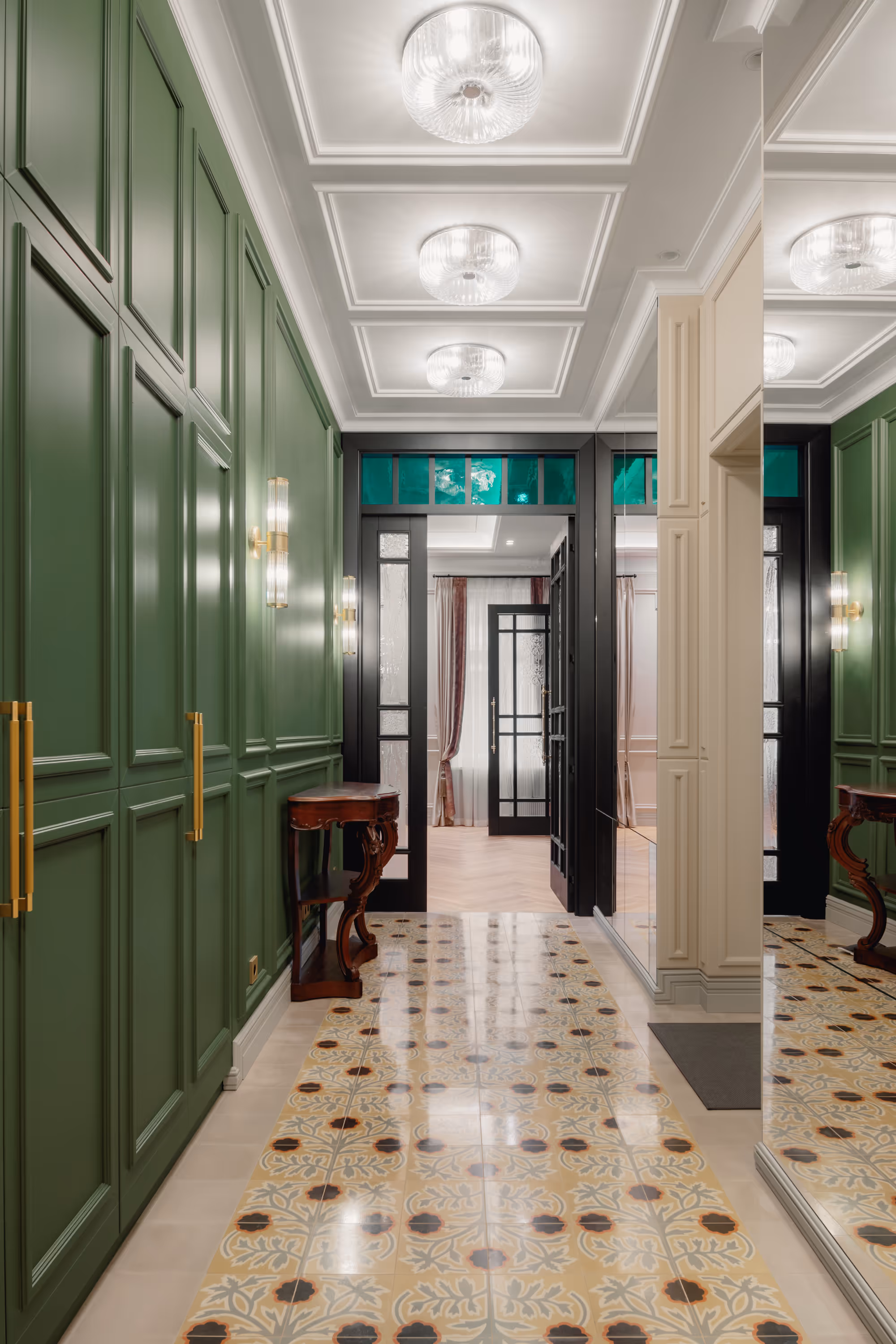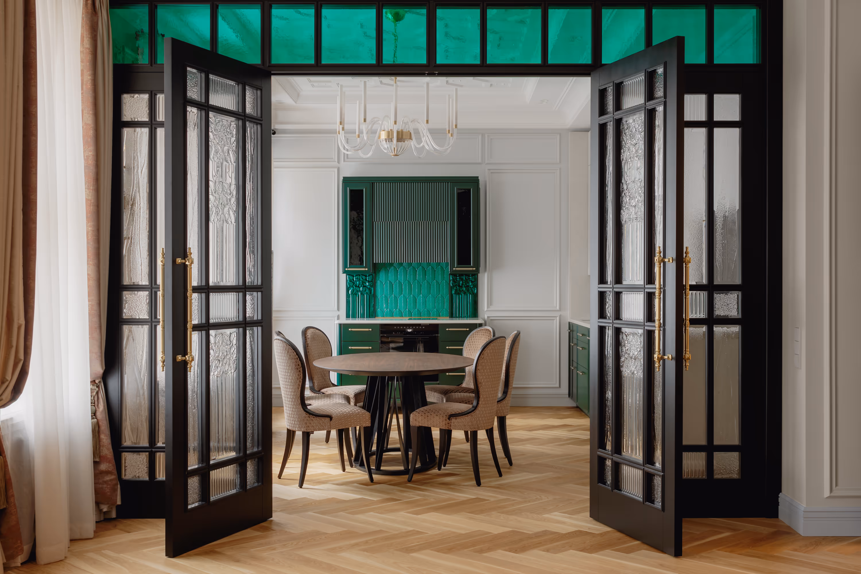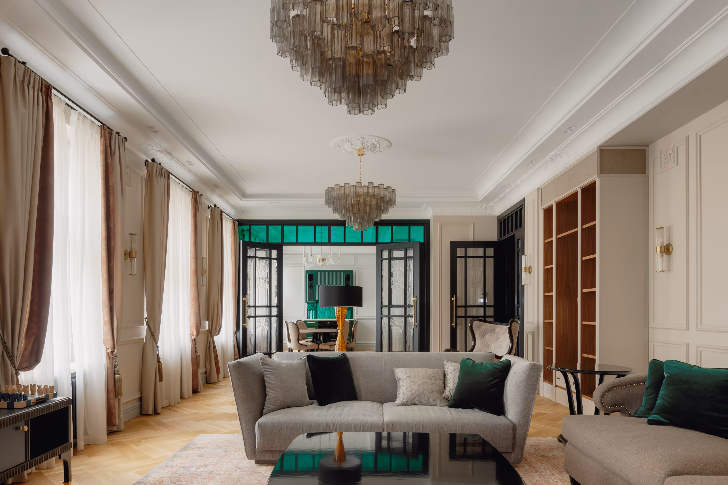 Galvenie risinājumi: Darbs ar vēsturisko kontekstu • Divu dzīvokļu apvienošana • Premium mēbeles • Pēc pasūtījuma izgatavotas mēbeles • Precīzs darbs ar proporcijām un gaismu